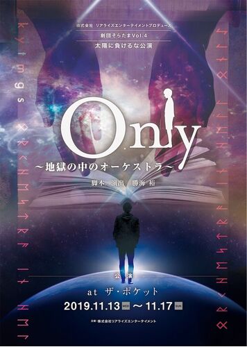 リアライズエンターテイメントプロデュース劇団そらたま Vol.4 太陽に負けるな公演 『Only〜地獄の中のオーケストラ〜』 原案・脚本・演出/勝海 裕 【公演スケジュール】2019/11/13(水)〜11/17(日)13日(水) 14:00〜 A /19:00〜 B14日(木) 14:00〜 B /19:00…
